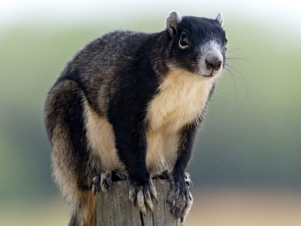 Fox squirrels (Sciurus niger) are medium-sized tree squirrels with a long, full tail. They exhibit a variety of coat colors and patterns from pale grey to black though the most common color is reddish-brown (seen above). They are found in a diversity of deciduous and mixed-forest habitats and depend on trees for both food and safety. Fox squirrels are native to eastern and central North America. They have also been introduced to the western parts of both the USA and Canada. In the east, some populations are in decline like the southern fox squirrel (Sciurus niger niger). The main threat to the southern fox squirrel population is the destruction of longleaf pine forests. This species also has an increased chance of getting hit by a vehicle due to their typically slow gait. In places in the west where fox squirrels have been introduced, populations have extablished quickly and the impact on local native squirrel species is of conservation concern.