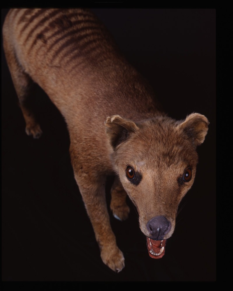 The Thylacine (Thylacinus cynocephalus), also known as the Tasmanian Tiger or Tasmanian Wolf, was a carnivorous marsupial that occurred in Australia. It was described as a doglike predator with rows of vertical stripes on its back. Few observational studies were conducted on wild or captive Thylacines and the species was hunted into extinction in the early 1930s. The Thylacine is an example of an organism that "survives" only in the natural history records housed in museum collections. iDigBio has records of over 30 specimens of Thylacine in the Portal, and the specimen pictured to the right is from in the Museum of Comparative Zoology at Harvard University.