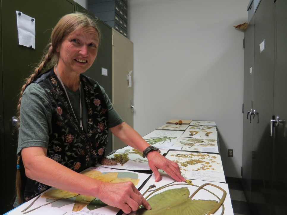 Dixie Damrel, Clemson University Herbarium curator, displays some of the 100,000-plus dried plant specimens in the collection. Image Credit: P. Kent/Clemson University.