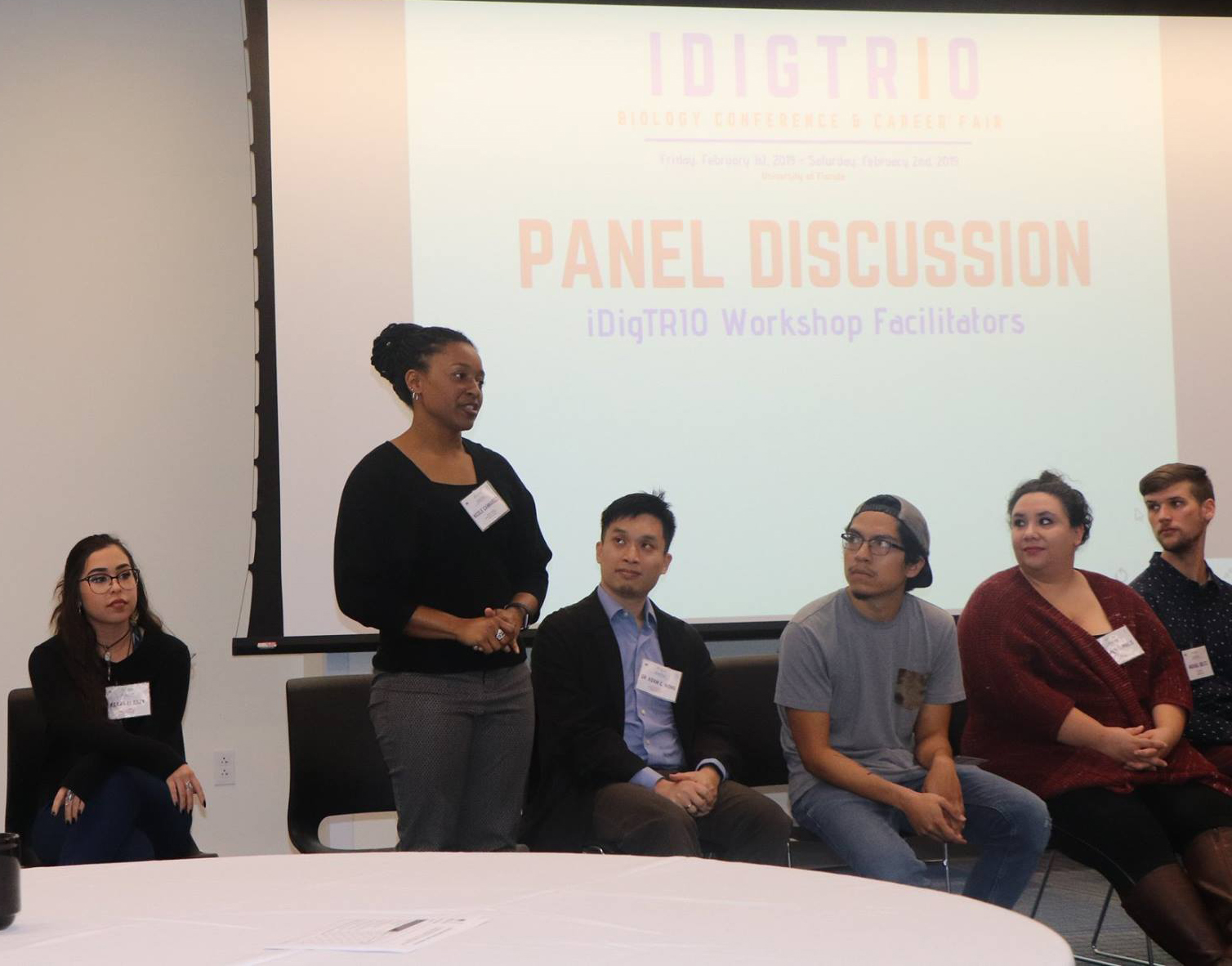 After lunch, the group came back together for a presentation about funding opportunities for graduate school from Erin Rice, the Diversity Programs Coordinator for the Office of Graduate Diversity Initiatives in the Division of Graduate Student Affairs within the Graduate School at UF. The conference concluded with a panel discussion that included all of our speakers, giving participants the chance to ask final questions.