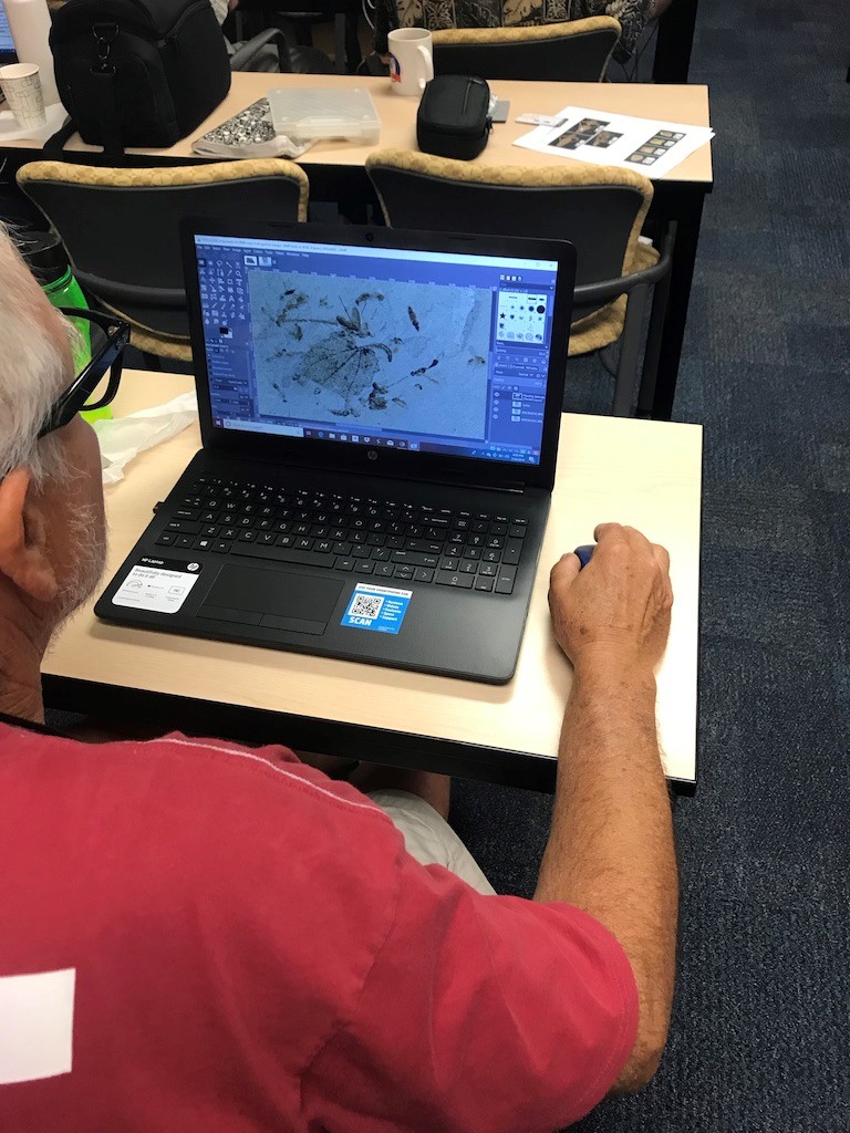 The final day of the workshop focused on manipulating images using opensource software like GIMP (Fig 3-4). We also practiced using apps available on smart phones and tablets for those participants who do not have access to computers at home. Participants also spent the remaining portion of the last day uploading images of their personal collections to the myFOSSIL e-museum. A main goal of the workshop was to increase the number of specimen images in the e-museum. The images that are high quality and are considered research grade, will receive GUIDs and be ingested by iDigBio for research potential. By the end of the workshop, over 120 new specimens had been added to the e-museum.